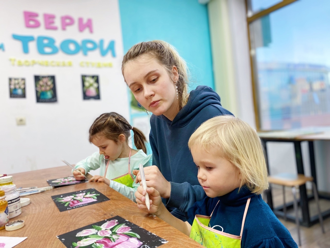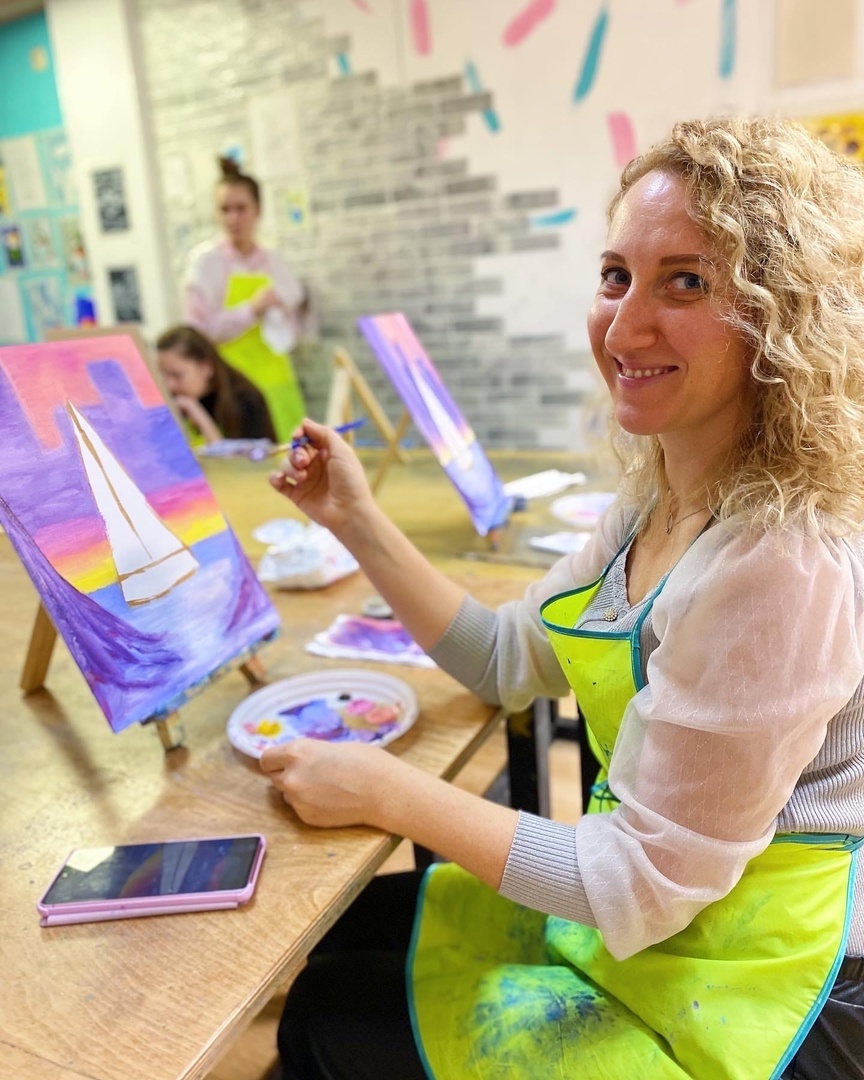 Разовые групповые занятия в разных техниках. Здесь мы пишем картины акрилом на холстах, занимаемся росписью одежды, варим свечи, работаем с поталью и декоративной пастой. Для детей от 6 лет.